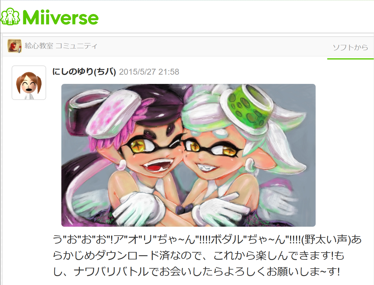 ちょうど10年前、Miiverseで絵心教室コミュニティに投稿したイラストをセルフリメイクしました。