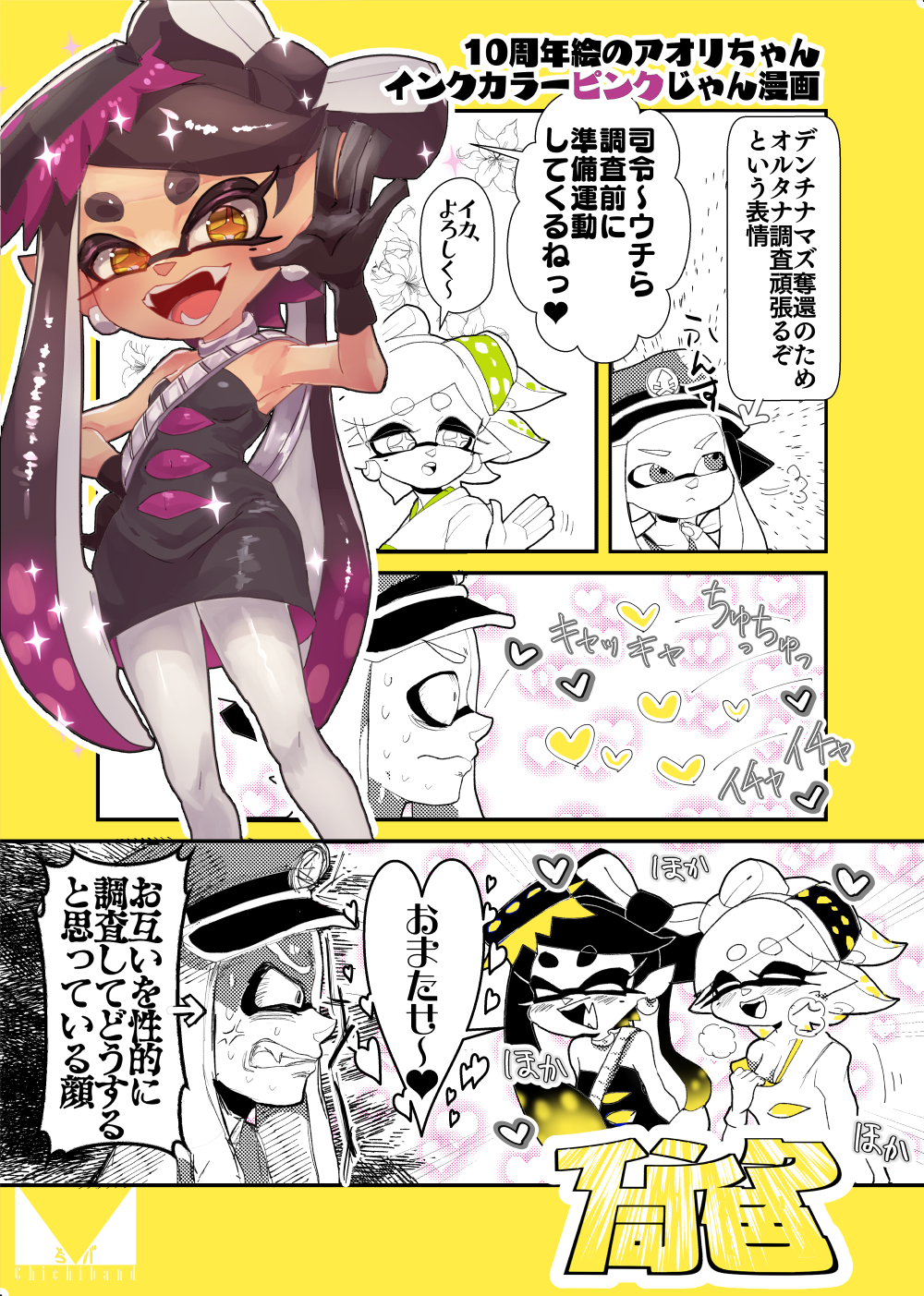 初代スプラトゥーンの時はこういう下ネタシオカラーズ百合+ツッコミ3号(現司令)をやたら描いていたので懐かしい気持ちになりました。